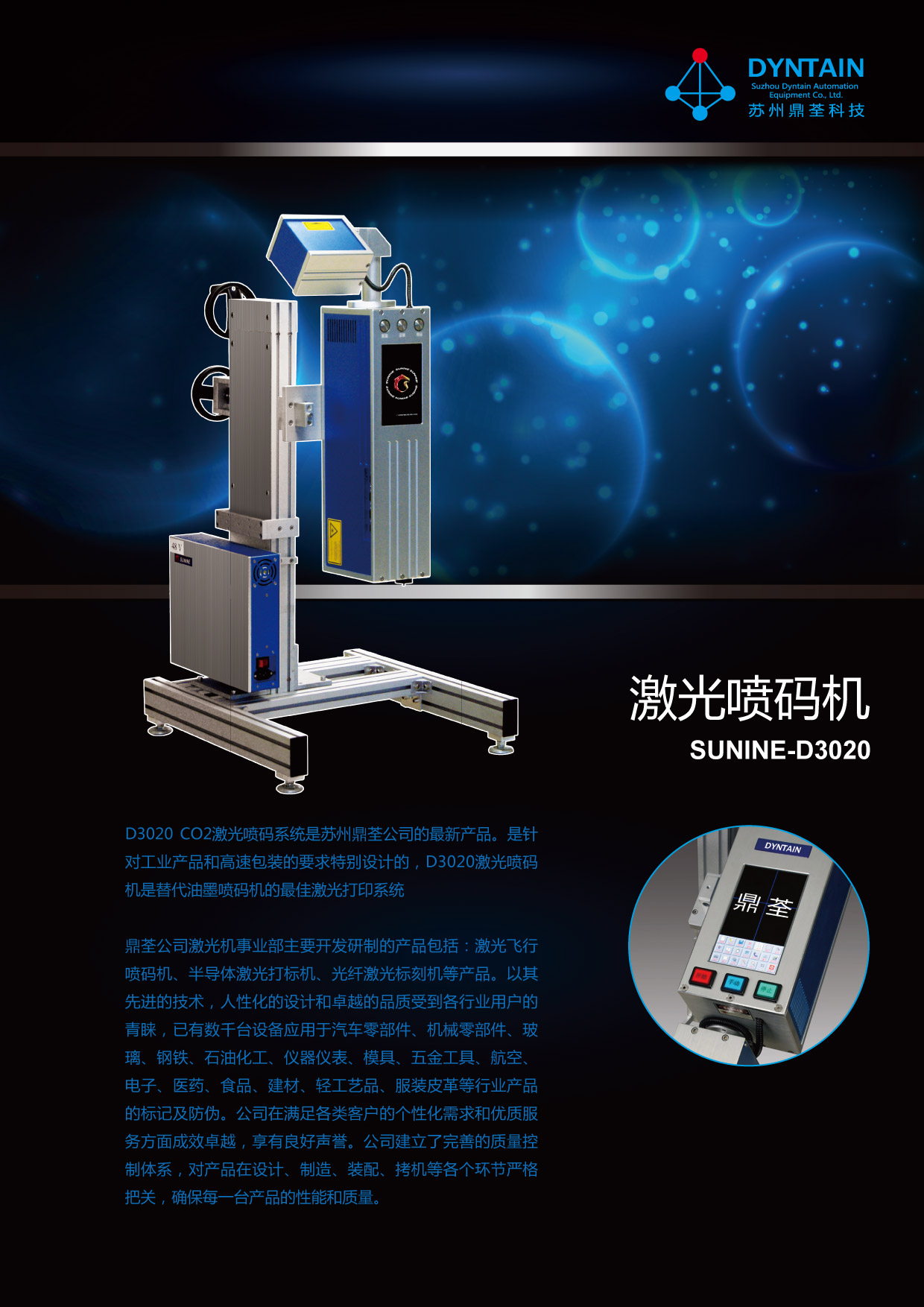 鼎荃D3000系列激光打標機采用美國原裝進口激光器,采用最先進的偏振鏡系統,確保了優(yōu)異的噴碼質量和高速度輸出。整個激光系統集成了觸摸屏界面、感應電眼和升降托架。結構設計精 咨詢熱線:051265969062 15862538359(手機號/微信同號)